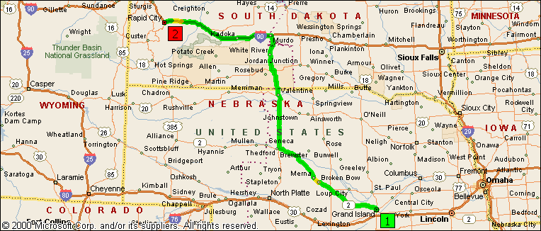 The route from Grand Island to Murdo was entirely on back roads through corn fields and farm and ranch land. It was very interesting but the driving was slower than going on Interstates. From Murdo to Rapid City it was all 75 to 80 miles an hour driving on the interstate.