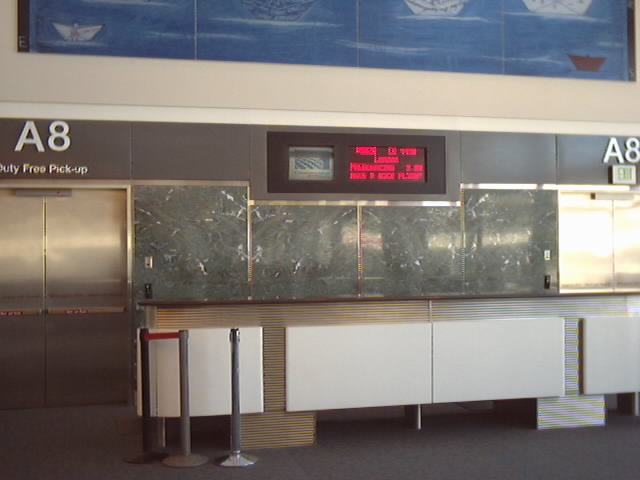 It is 3:30pm on Friday the 20th of October and Susan and I are waiting for the plane to start boarding. The boarding area is interesting because of the art work and the modern decor of the place.